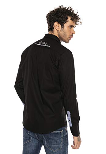 Red Bridge Camicia a Maniche Lunghe Ricamata Moderna da Uomo Nero