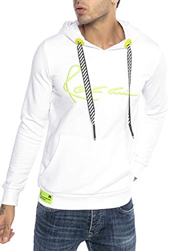 RED BRIDGE Felpa con Cappuccio da Uomo Maglia con Dettagli Fluo Design Neon Big Stitch Bianco L