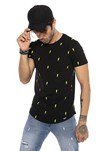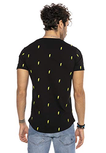Red Bridge Maglietta a Maniche Corte con Disegno Fulmine per Uomo Nero