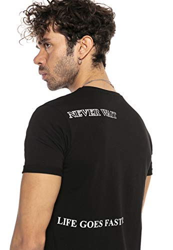 Red Bridge Maglietta da Uomo a Maniche Corte con Stampa Floreale di Cannabis a Maniche Corte Nero