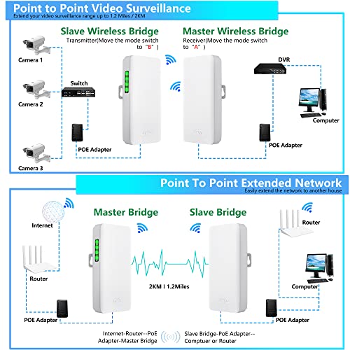 Bridge wireless, punto di accesso punto-punto per esterni da 5,8 GHz, rete CPE Plug & Play PTP/PTMP, 100 Mbps, 2 km, con antenna ad alto guadagno da 12 DBI, 2 pezzi