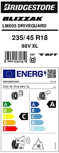 Bridgestone BLIZZAK LM005 DRIVEGUARD - 235/45 R18 98V XL - C/A/72 - pneumatico invernale con tecnologia DriveGuard Run-Flat (per auto e SUV/4x4)