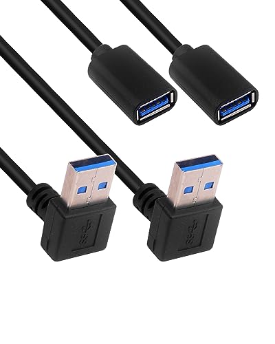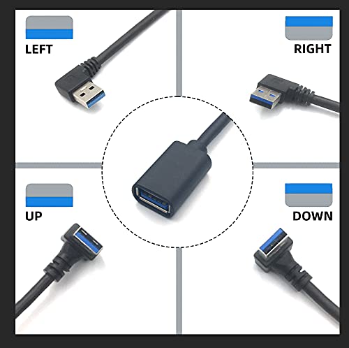 BRIEFCEC Cavo Prolunga USB 3.0 Maschio a USB 3.0 Femmina 90 Gradi USB Maschio a Femmina 30cm USB Prolunga 5 Gbps Connettore Adattatore per PC, Lettore di Schede, Tastiera, Scanner(Giù, 2Pezzi, Nero)