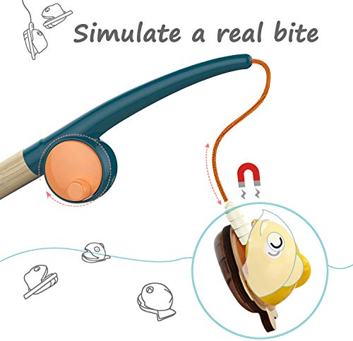 Durevole e sicuro: ci sono forti magneti sulle bocche dei pesci 3D e anche il gancio a forma di verme che rendono i bambini a pescare facilmente. Il gioco di pesca per bambini per 2 e 3 anni è realizzato in legno naturale e plastica resistente, durevole e sicuro. Accompagnare i bambini per lungo tempo