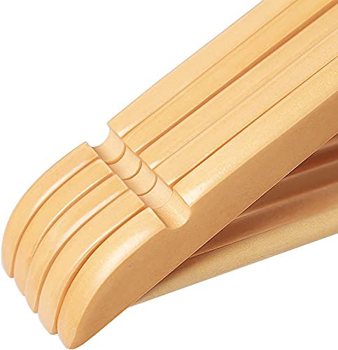 Brigros - Grucce per Completi in Legno, Grucce per Cappotti in Legno Massiccio con Scanalatura, Antiscivolo per Giacche, Camicie, Pantaloni, Gancio Girevole a 360° (5 pezzi, Natuale)