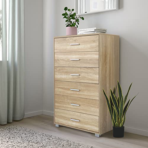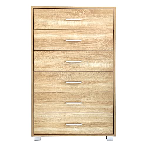 Brigros - Mobile Cassettiera in Legno 6 Cassetti con Guide in Metallo, Misure 68 x 40 x 115 cm, Comò Design Moderno Compatto con Maniglie in Alluminio e Piedini in ABS Silver (Rovere)