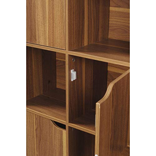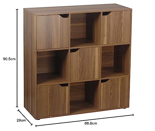 Brigros - Mobile Mensola Libreria con 9 cubi 5 Ante portaoggetti scaffale Design Classico da Terra portalibri CD Legno massello 90 x 90cm (Legno Naturale)