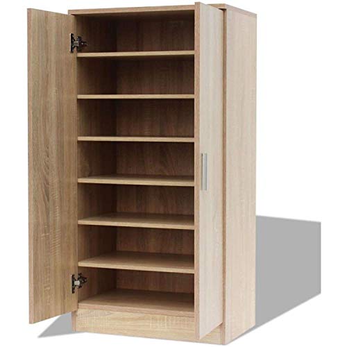 SPECIFICHE TECNICHE: Tipologia: armadio Materiale: pannelli in fibra di legno Dimensioni: 55 x 36 x 108 H cm Colore: rovere sonoma Ante: 2 Mensole interne: 2 Vano con asta Da assemblare
