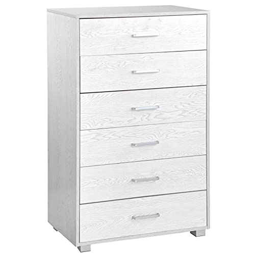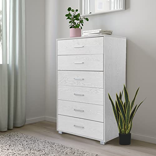 BRIGROS La voglia di fare WeHome - Mobile Cassettiera in Legno 6 Cassetti con Guide in Metallo, Misure 68 x 40 x 115 cm, Compatto Maniglie Alluminio Piedini in ABS (Rovere Sbiancato)