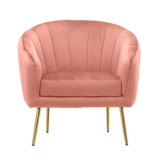 BRIGROS La voglia di fare WeHome - poltrona in velluto modello luxurycon gambe in ferro dorate alte 24cm e poltrona con imbottitura in schiuma dal design vintage e confortevole (Pink)