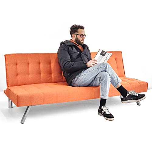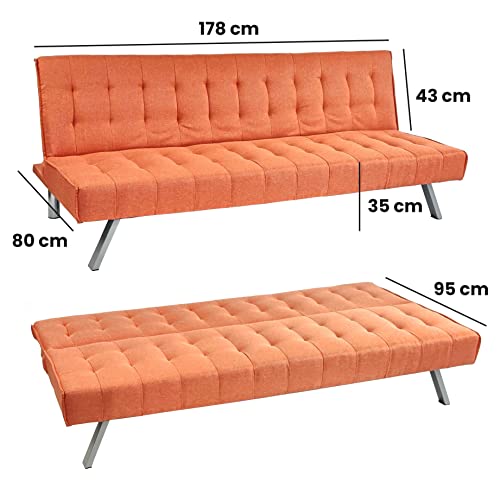 Brigros WeHome - Divano letto 3 posti in tessuto, Dimensioni divano: 180 * 92 * 79, Spessore del materasso 15cm, disponibile in diversi colori Dimensioni letto: 180 * 108 * 38 (Arancione)