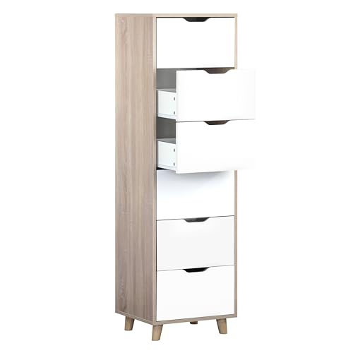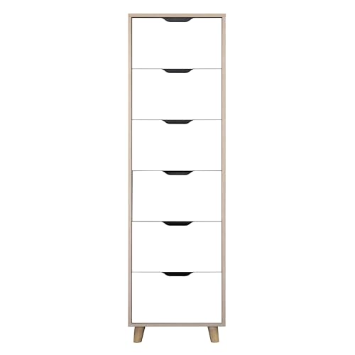 Brigros WeHome - Mobile Cassettiera Alta In Legno Modello Sky Con 6 Cassetti, Dimensioni 45 X 40 X 150 Cm, Cassettiera Compatta Moderna Con Guide In Metallo E Piedi In Legno (Rovere/Bianco)