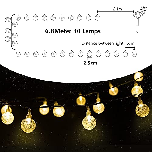Briignite - Stringa a energia solare, 30 LED, luce bianca calda, 6,5 m, impermeabile, ideale per giardino, patio, cortile, casa, albero di Natale, matrimonio (8 modalità)