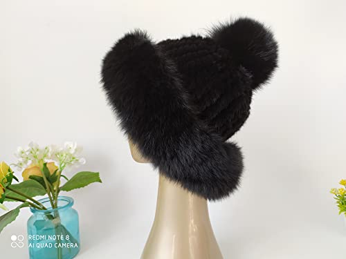 Brillabenny Cappello Colbacco Donna Vera Pelliccia Volpe e Visone Fur Mink Fox Lusso Inverno Neve MOD Russia (Nero)