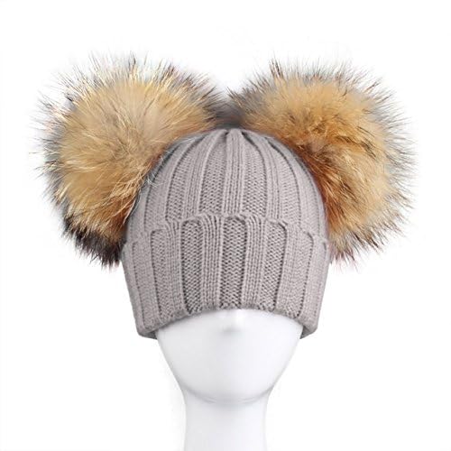BrillaBenny Cappello Cuffia Grigio Doppio PON PON in Pelliccia MURMASKY 1-3 Anni Bimba Cappellino Lana Hat Grey Fur Raccoon Baby Kids Double Pom Poms Luxury