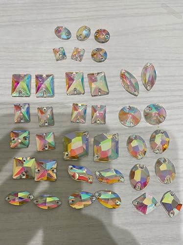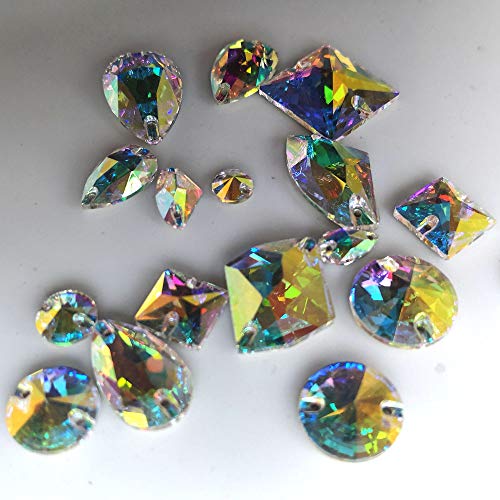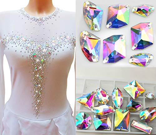 Brillabenny Mix Pietre Strass da Cucire Aurora BOREALE Doppio Foro Crystal AB Goccia, Quadrato, Fiore, Baguette, Rivoli, Chicco x Decori Pattinaggio Abito Danza Wedding (80 Pietre Mix)