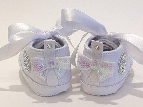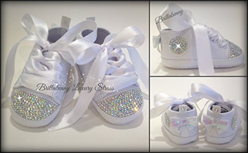 Brillabenny Scarpe Bambina 3-6 Mesi BIANCHE 11 CM Cristalli Strass NEONATA Battesimo Cerimonia Sneakers Baby