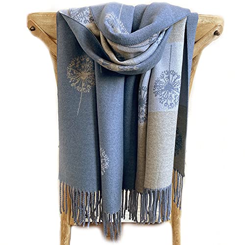 Brillabenny SCIARPA STOLA PASHMINA MANTELLA SCIALLE DONNA RAGAZZA LANA E CASHMERE (AZZURRA E GRIGIA)