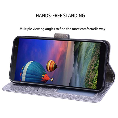 Brillantini Samsung Galaxy A8 2018 Flip Cover 3D Design Bling Strass Argento Premium PU Leather Glitter Big love Pelle Antiurto Libro Portafoglio Kickstand Magnetica Cover Flip Case per Samsung A8