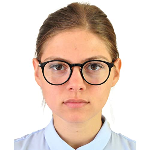 Mini Brille Occhiali da Lettura con Grandi Lenti Tondi, stile Classico da Nerd, Custodia inclusa, Montatura in Plastica (col. Nero) per Uomo e Donna Diottrie +2.5