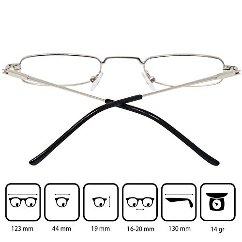 Mini Brille Mini Occhiali da Lettura Leggeri, Montatura in Acciaio (Argento), in Omaggio Custodia Compatta in Alluminio, Occhiali Lettura Tascabili Uomo e Donna Diottrie +1.0