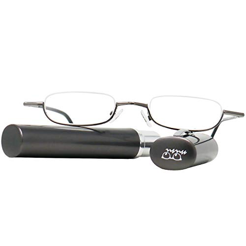 Mini Brille Mini Occhiali da Lettura Leggeri, Montatura Minimal in Acciaio (Grafite), in Omaggio Custodia Compatta in Alluminio, Occhiali Lettura Tascabili Uomo e Donna Diottrie +1.5