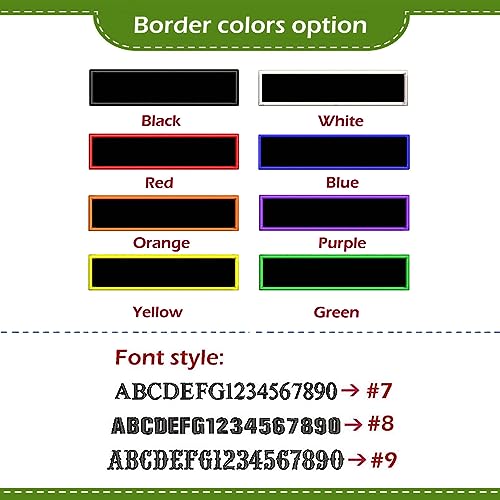 12 colori del ricamo che puoi scegliere: rosa, giallo, blu, verde, viola, rosso, bianco, arancione. E così via. Si prega di sapere Il colore del carattere è Colore ricamo.