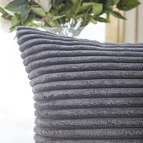 Home Brilliant - Federa decorativa per cuscino quadrato, a righe, in velluto a coste, Tessuto, C|dark Grey, 45 x 45 cm