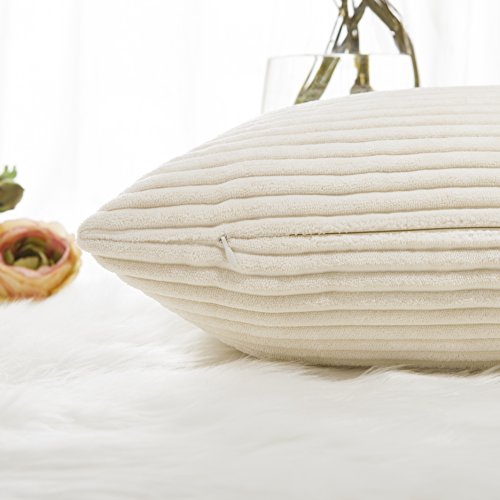 Home Brilliant - Federa decorativa per cuscino quadrato, a righe, in velluto a coste, Tessuto, C|cream Cheese, 26"x26"