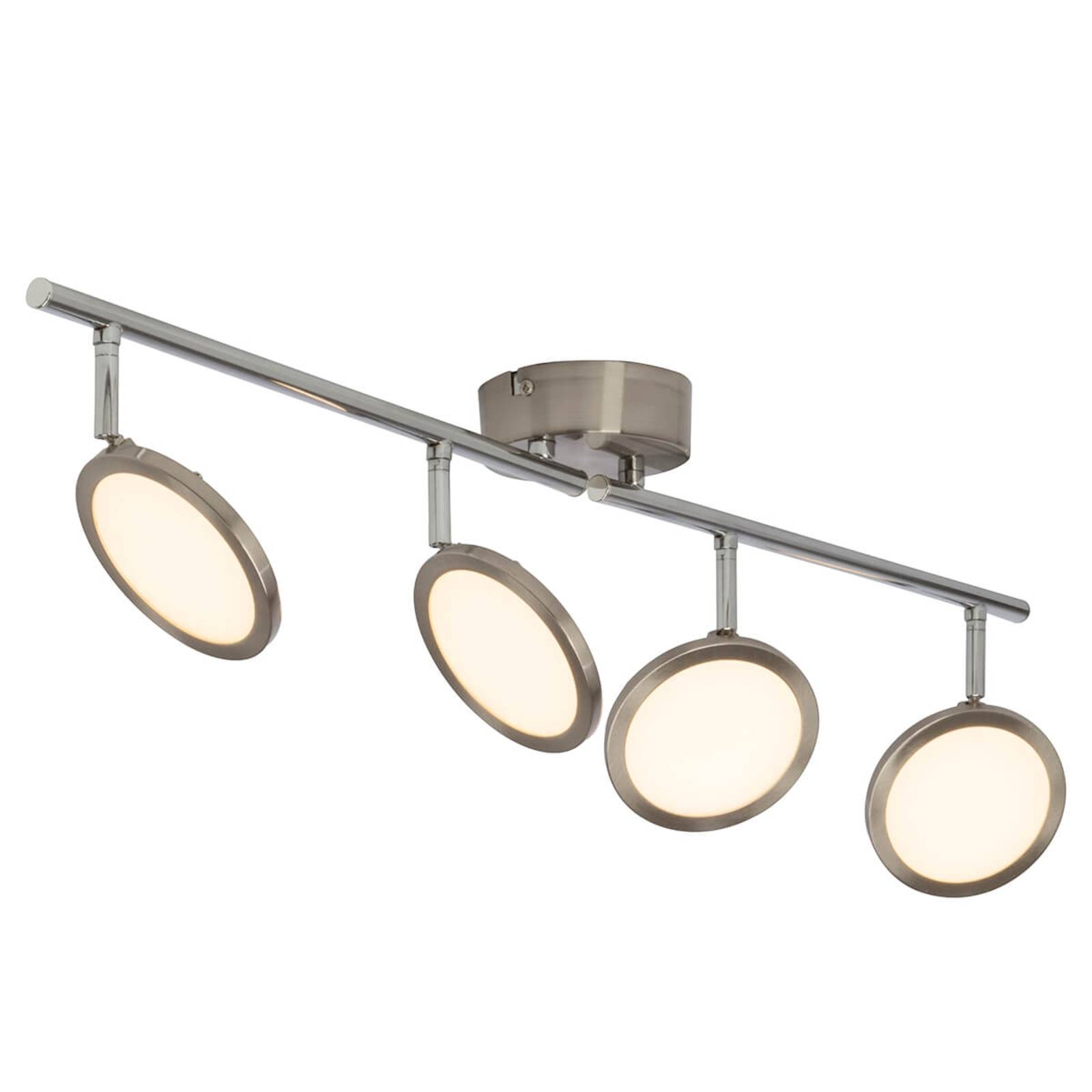 Pluto - lampada LED da soffitto a 4 luci con funzione easydim I corpi illuminanti rotondi di questa lampada LED da soffitto sono piatti e possono essere girati e inclinati a piacere, per orientare la luce secondo le necessità. Inoltre, questa lampada LED da soffitto, dal carattere moderno, si avvale della funzione easydim. Per regolare l'intensità luminosa dei LED è sufficiente l'interruttore a parete standard esistente. Con l'interruttore On/Off si accende e si spegne la lampada, come di consueto, ma si può anche avviare la regolazione dell'intensità luminosa: basta azionare l'interruttore per due volte di seguito a luce accesa. La luminosità dei LED si riduce lentamente dal 100% al 10%. Una volta raggiunto il livello desiderato, basta azionare di nuovo l'interruttore per due volte (entro 2 secondi) e il processo si arresta sul livello attuale.