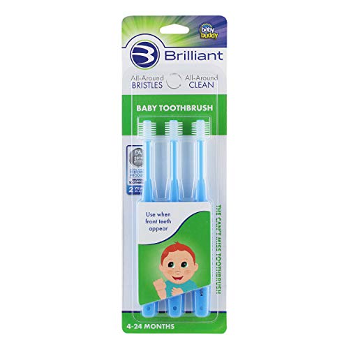 Brilliant Spazzolino da denti Baby Buddy, Baby First Spazzolino da denti dai 4 mesi ai 2 anni, testina rotonda e setole morbide per pulire tutta la bocca, per il primo anno, blu, 3 pezzi