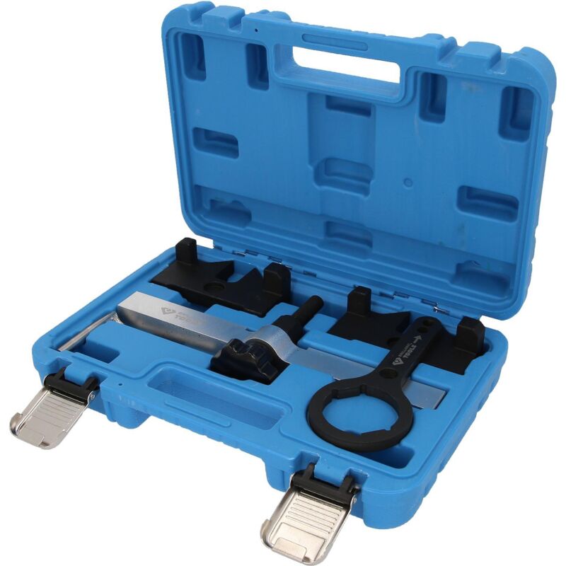 Per la regolazione della fasatura del motore in caso di sostituzione della catena di distribuzione, di riparazioni della testata, sostituzione della guarnizione della testata ecc. Contenuto: Utensile di arresto per albero a gomiti, da utilizzare come OEM 118570, 119190 Utensile di arresto per albero a camme, da utilizzare come OEM 119890 Vite zigrinata, da utilizzare come OEM 119891 Listello pressore, da utilizzare come OEM 119892 Calibro a forcella per albero a camme delle valvole di aspirazione e di scarico, da utilizzare come OEM 119893 Distanziatore, da utilizzare come OEM 119894 LA NOSTRA QUALITÀ: BRILLANTE I NOSTRI PREZZI: SMART Ogni utensile cela più di un quarto di secolo di esperienza dei nostri tecnici. La qualità senza compromessi dei nostri eccellenti utensili professionali di prima qualità per le difficili operazioni quotidiane è una delle ricette del nostro successo. Facciamo a meno di una complessa struttura di distribuzione e di stravaganti attività di marketing e