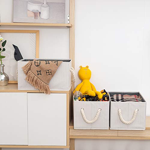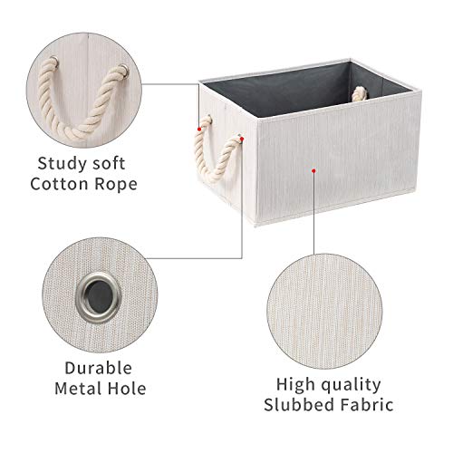 BrilliantJo - Set di 3 scatole Pieghevoli con Manico in Corda di Cotone, Resistente al Tessuto slubbed, Organizer per cestini, armadi, Giocattoli e Molto Altro, Colore: Beige (37 x 26 x 21 cm)