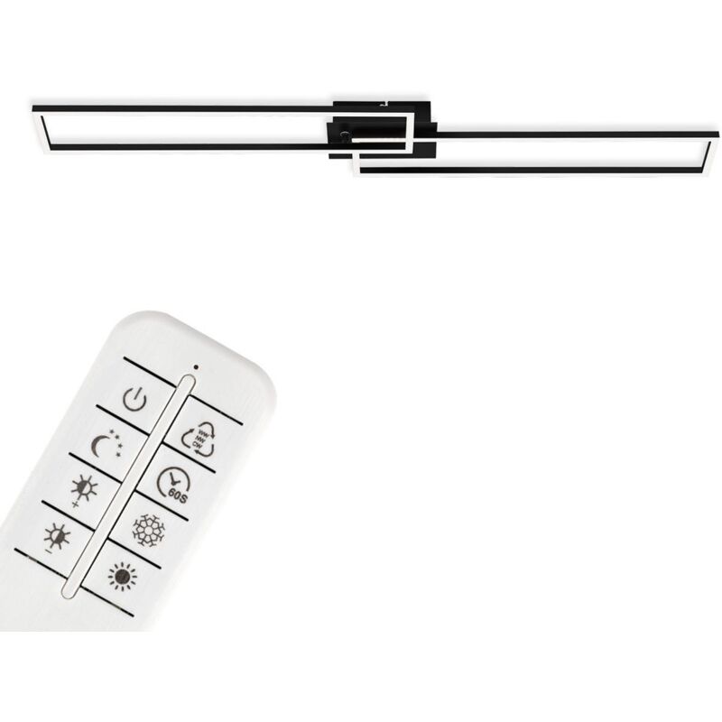 Struttura: questa moderna plafoniera soffitto con due moduli LED rettangolari (uno dei quali girevole), in metallo e plastica, dà un tocco di stile alla tua casa grazie all'aspetto nero elegante - per un uso versatile, ad esempio come lampadario soggiorno, lampadario camera da letto, lampadario cameretta, lampadario cucina oppure come lampadario bagno Funzioni: con questa lampada con telecomando grazie alla dimmerabilità e al controllo della temperatura del colore (2.700 kelvin - 5.000 kelvin), è possibile regolare le condizioni di illuminazione in base alle proprie esigenze e necessità - viene salvata l'ultima impostazione selezionata (funzione memory) Comfort: ulteriori vantaggi di questo lampadario led sono la funzione di illuminazione notturna e il timer integrato - con l'aiuto del telecomando in dotazione è possibile controllare la plafoniera comodamente dal proprio divano Uso energetico: con un risparmio energetico di 40 watt, i due moduli LED hanno una potenza luminosa totale