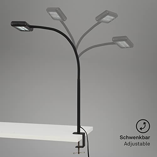 Briloner - Lampada a morsetto a LED, lampada a morsetto con luce diurna, lampada da scrivania con interruttore a cavo, 7,5 watt, 800 lumen, nero
