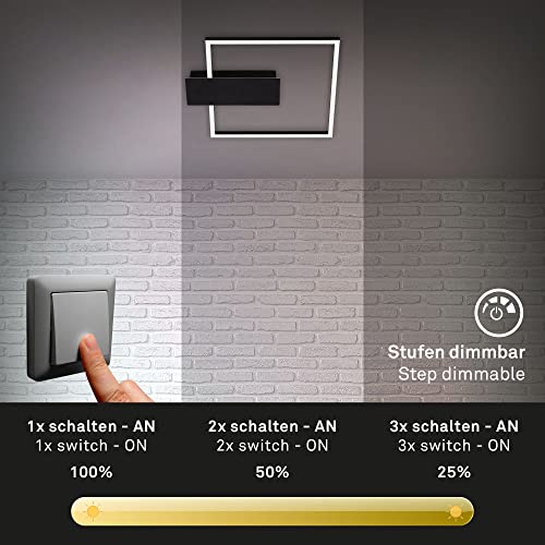 Briloner Lampada da soffitto a LED dimmerabile in 3 fasi, funzione memory, colore della luce bianco caldo, lampada da soffitto a LED angolare, nero, 375x320 mm