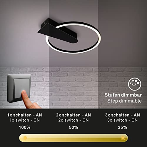 Briloner - Lampada da soffitto a LED dimmerabile in 3 fasi, funzione memory, colore della luce bianco caldo, lampada da soffitto a LED rotonda, nero, Ø29,5 cm