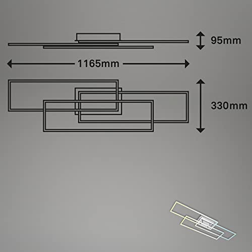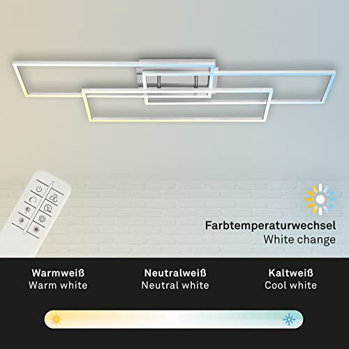 BRILONER - Lampada da soffitto LED, dimmerabile, plafoniera LED con telecomando, cornice LED, temperatura colore regolabile, cromo-alluminio, 1165x330x95 mm