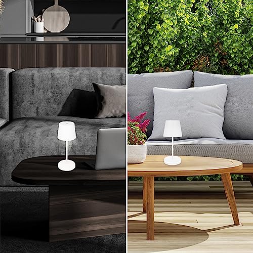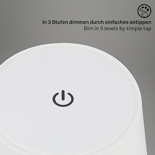 Briloner - Lampada da tavolo a LED senza fili, lampada da comodino dimmerabile touch, lampada da scrivania, lampada da tavolo per esterni e interni, USB-C, luce bianca calda, bianco, 26 cm