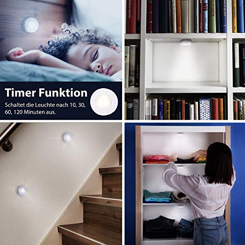 Briloner Leuchten - Set di 6 luci a LED per armadio con telecomando, luce dimmerabile e funzionale, luce notturna da camera, con funzione timer e pad adesivi 3M, 58x26mm (DxA), colore bianco