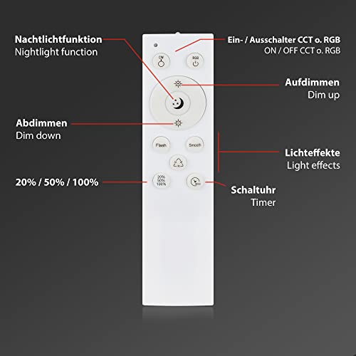 BRILONER Leuchten - LED Ceiling Light RGBW, LED Ceiling Light Dimmable, Colourful Light Colours, Neutral White, Surface Mounted Lamp, Remote Control, White, Diameter 380 x 50 mm