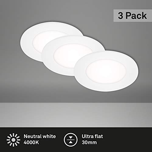 BRILONER Leuchten - Luci LED da incasso, set da 3, lampade da soffitto da 3 watt, 350 lumen ciascuna, 4.000 Kelvin, IP23, bianco, 68x30mm (DxH)