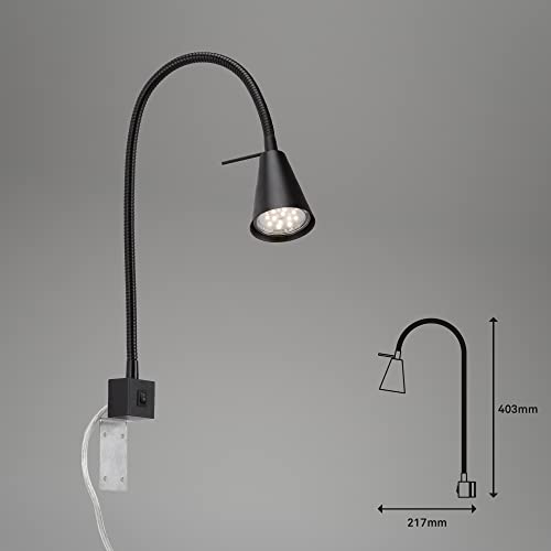 Briloner Leuchten - Lampada da letto a LED con braccio flessibile, interruttore on/off, 4 Watt. 400 lumen, 3000 Kelvin, di colore nero