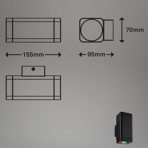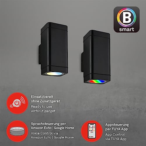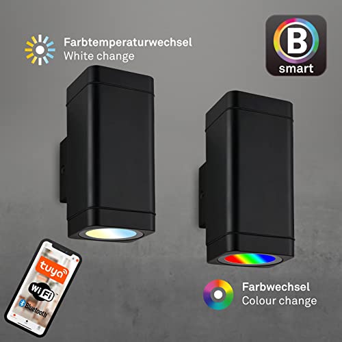 Briloner Leuchten - Lampada da parete Smart LED RGB, IP44, Lampada da esterno Wifi, lampada da parete, cambio colore, controllo vocale, nero, 95x70x155mm