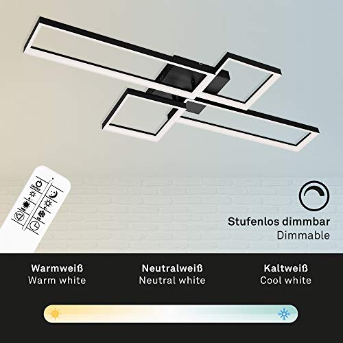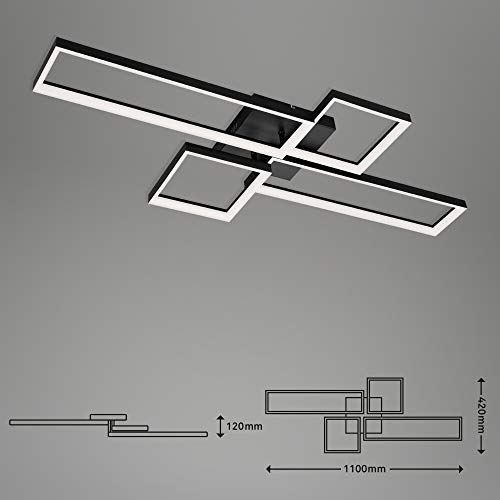 Briloner Leuchten - Lampada da soffitto a LED, plafoniera dimmerabile, incl. telecomando, regolazione della temperatura di colore, funzione luce notturna e timer, nero, 40 Watt, 1100x420x120mm