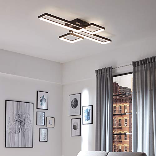 Questa moderna plafoniera a LED con due moduli LED rettangolari e due quadrati (uno dei quali girevole), realizzata in metallo-plastica, decora perfettamente ogni stanza grazie al suo design semplice e nero - versatile ed utilizzabile come lampada da soggiorno o lampada da camera da letto