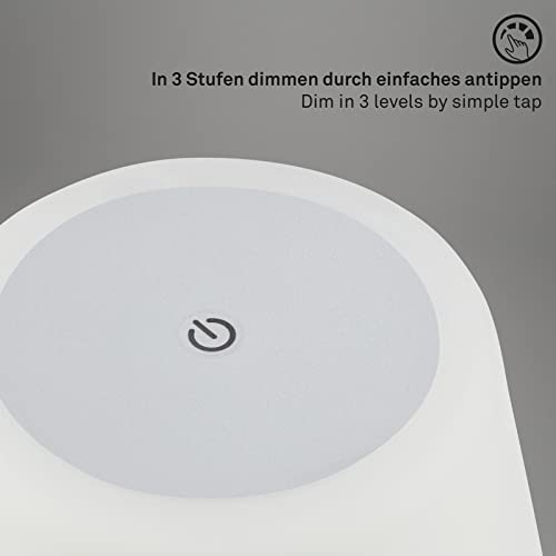 La luminosità della temperatura di colore bianco caldo (3300 K) è regolabile in 3 livelli grazie alla funzione touch con un semplice tocco. La lampada da tavolo a LED mobile in vetro con batteria integrata si illumina da 3 Watt a 350 lumen