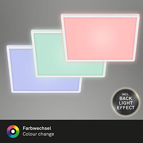 Briloner Leuchten - Pannello a LED a soffitto, plafoniera dimmerabile, RGB, controllo del colore, retroilluminazione, incl. telecomando, 22 Watt, 2.700 Lumen, 4.000 Kelvin, bianco, 420x420x28mm (DxH)
