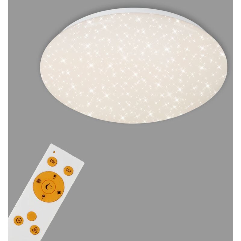 Descrizione Descrizione La plafoniera bianca dà un tocco di eleganza alla casa grazie all'effetto glitterato che si crea sulla sua superficie all'accensione. La lampada valorizza l'ambiente in cui è inserita ad esempio la cameretta dei bambini, la camera da letto, il soggiorno o la sala da pranzo. È possibile personalizzare l'illuminazione scegliendo l'intensità della luce e la temperatura di colore della luce da calda a fredda (3000-6500K). Il pratico telecomando a infrarossi, incluso nella confezione, permette di modificare le impostazioni comodamente. Il lampadario LED con design a cielo stellato è estremamente versatile e permette di illuminare l'ambiente in base alle proprie esigenze. La lampada da soffitto è dotata di LED integrati che creano luce con intensità di 1300 Lumen e un consumo di 15 Watt. I LED hanno un lungo ciclo di vita di circa 25.000 ore e non sono sostituibili. Inclusi nella confezione: 1 plafoniera LED Briloner Leuchten, Luce calda-fredda da 3000K a 6500K, 15W