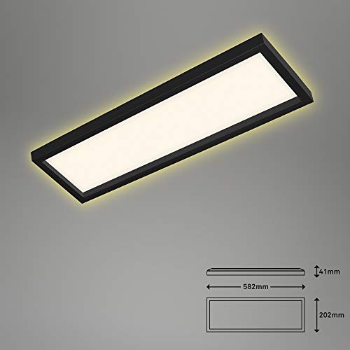 Briloner Leuchten - Plafoniera a LED con effetto di retroilluminazione, 22 Watt, 3.000 Lumen, 3.000 kelvin, bianco-nero, 582x202x41mm (LxPxH)